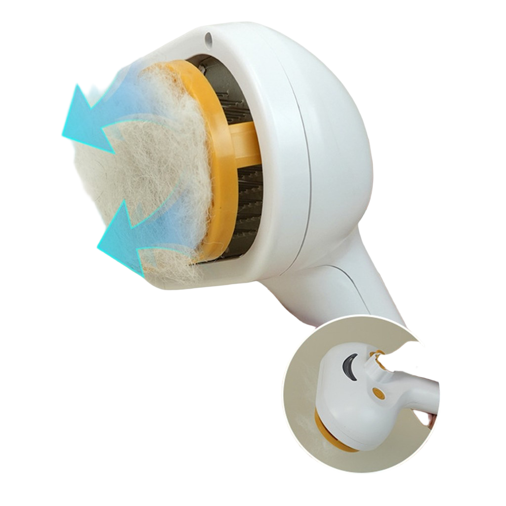 Recolhe pelos e sujeiras facilmente e os remove com o pressionar de um botão, sem precisar tocar nas cerdas.