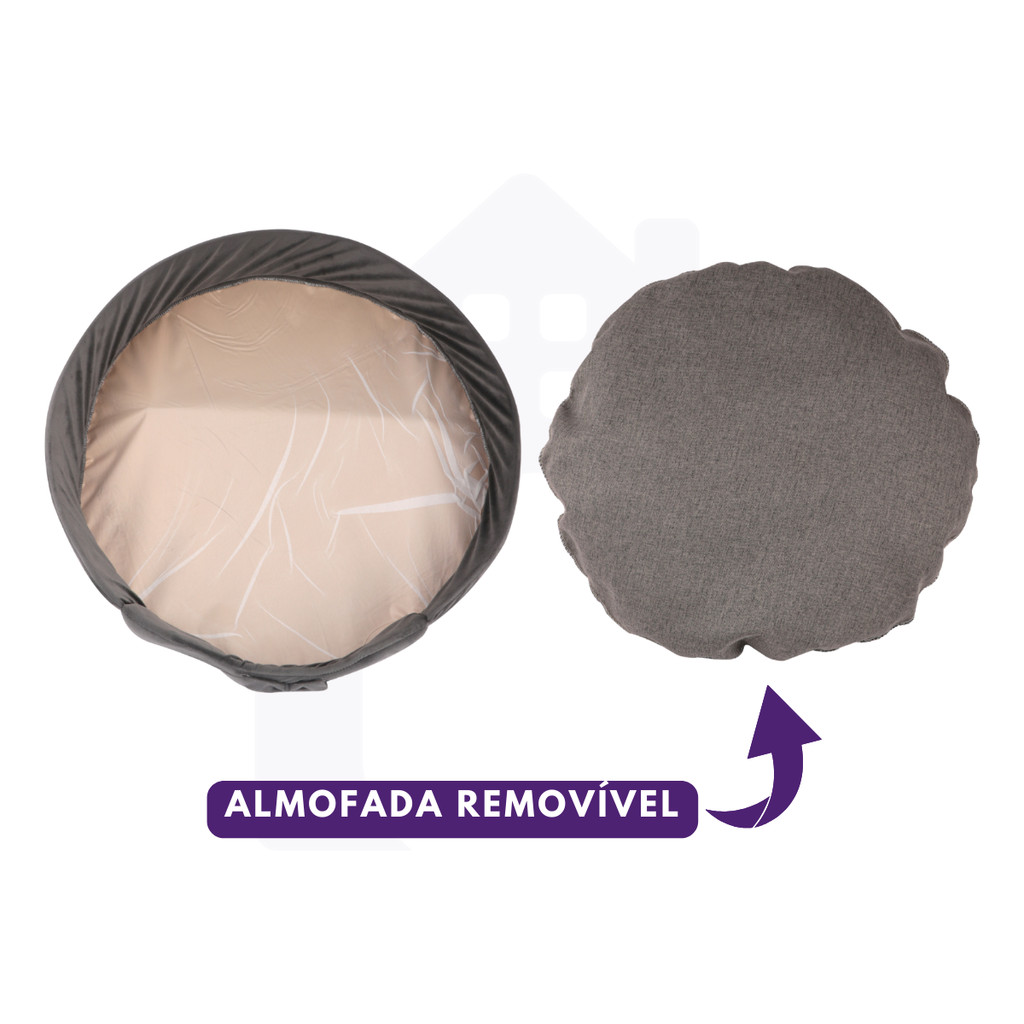 Almofada Interna: Removível, com enchimento em fibra siliconada e flocos de espuma